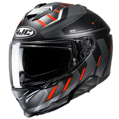 O i71 ultrapassa os limites de um modelo Sport-Touring com o seu novo e elegante design de concha. O capacete “APC” Advanced Polycarbonate Composite tem agora 3 cascos nos 6 tamanhos disponíveis para ajudar a otimizar o peso e o conforto do motociclista. A abertura superior reorganizada com aberturas de boca alargadas permite uma maior entrada de ar e ventilação. A i71 também apresenta como novidade a proteção facial e a pala de sol. O escudo facial HJ-38 Pinlock ready vem com um novo sistema de bloqueio PE (Push/Eject) para maior segurança, mas ainda assim fácil de utilizar com luvas. A nova pala de sol (HJ-V12) oferece uma nova opção de 3 posições para o condutor ajustar a pala de sol para a frente (até 10 mm), proporcionando uma proteção ideal da pala de sol. O i71 também aceita os sistemas Bluetooth Smart HJC de segunda geração.