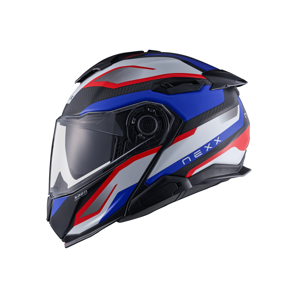 Um capacete modular para turismo e aventura com design e estética esportivos, ideal para explorar trilhas e viagens longas, mantendo o conforto em todos os momentos. Possui dupla aprovação P/J e conta com um sistema de pivô Super Locker que trava a proteção do queixo quando aberta. Feito de fibra de carbono X-Pro que oferece alta resistência a impactos e grande leveza. Possui uma tela grande que oferece um amplo campo de visão, além de um quebra-sol que protege você dos raios solares. Incorpora um sistema de ventilação eficiente e acolchoamento interno respirável com sistema de isolamento acústico que reduz o ruído externo. Predisposição para instalar interfone e câmera GoPro (não inclusas). Fecho micrométrico.